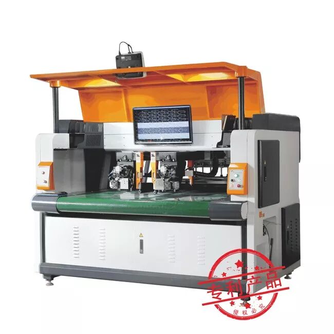 分体式双机头设计,使机器工作效率更高,每小时产能可以切割800对中底板;